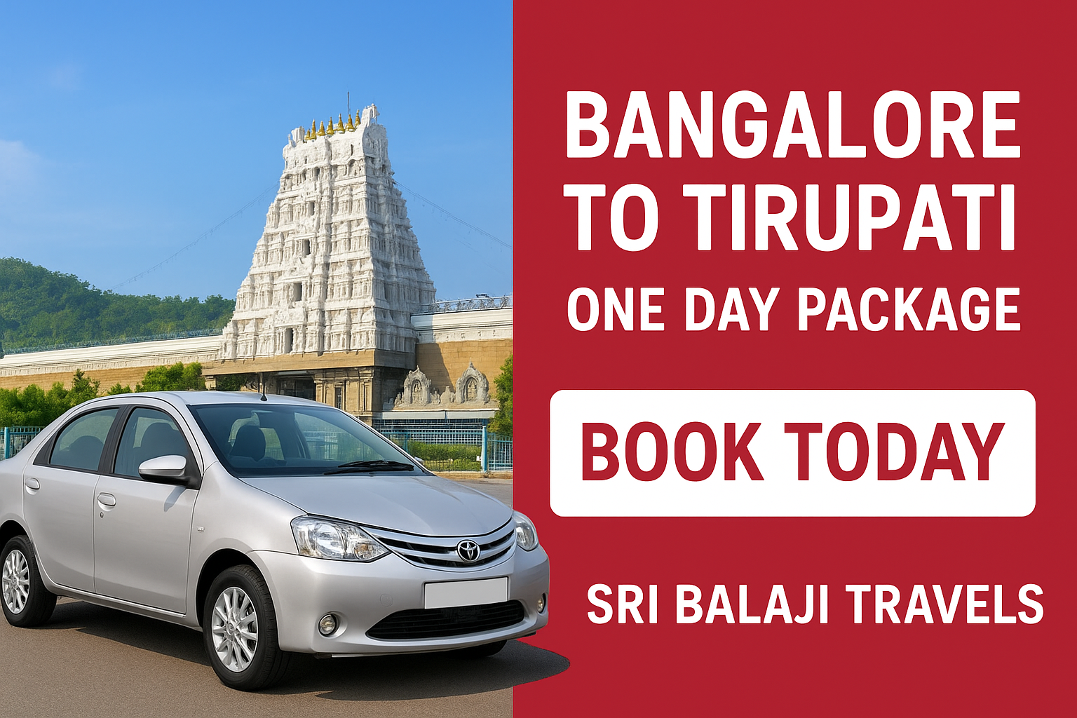 Book your Bangalore to Tirupati package with Sri Balaji Travels and experience a smooth, blessed journey to Tirumala Balaji Temple.