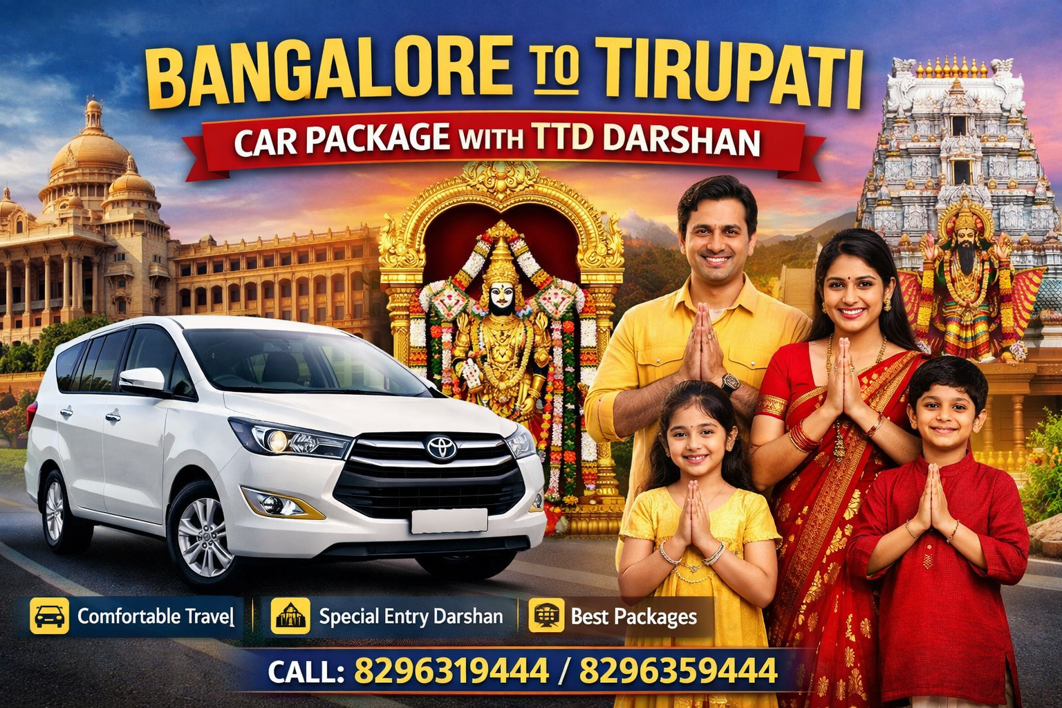 Planning a spiritual getaway from Bangalore to Tirupati? Sri Balaji Travels offers the perfect Bangalore to Tirupati package by car that ensures comfort, convenience, and a hassle-free TTD Special Entry Darshan at Tirumala. Whether you are traveling with family, seniors, or on a short trip, these packages are designed to make your pilgrimage memorable.