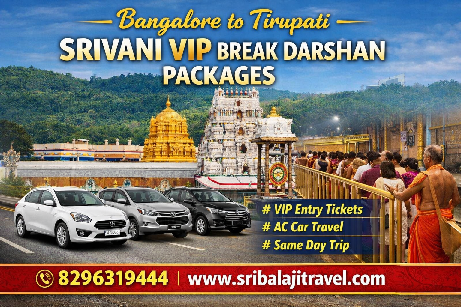 Our Bangalore to Tirupati Srivani VIP Darshan package ensures: