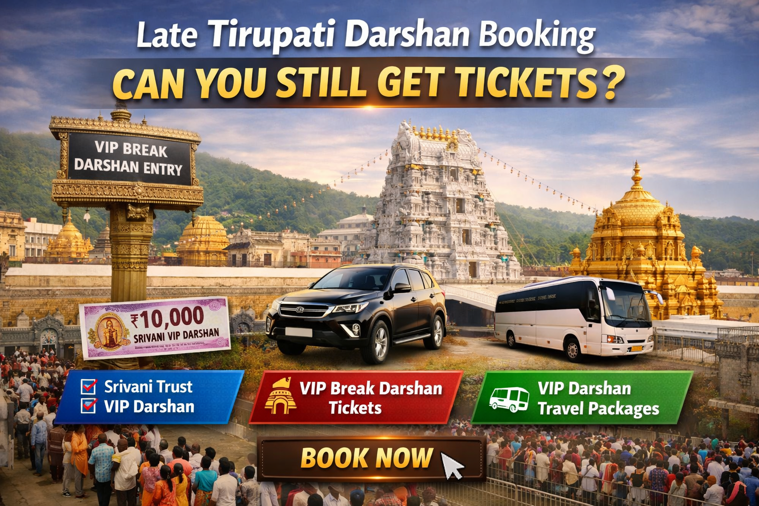 In this detailed Tirupati VIP Darshan Travel Planning Guide, we explain the best alternatives for late bookings, including Srivani VIP break darshan, special entry tickets, and travel packages.