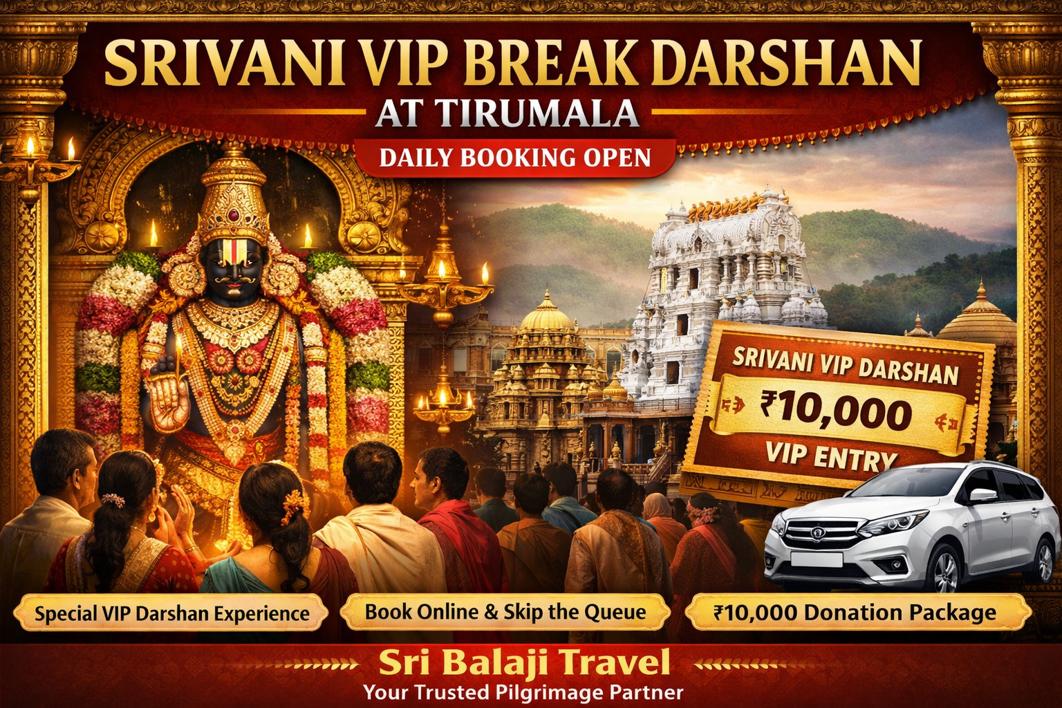SRIVANI VIP Break Darshan in Tirumala is a privileged darshan offered to devotees who make a Srivani Trust donation of ₹10,000 per person. This darshan is popularly known as the 10000 rupees VIP Darshan package.