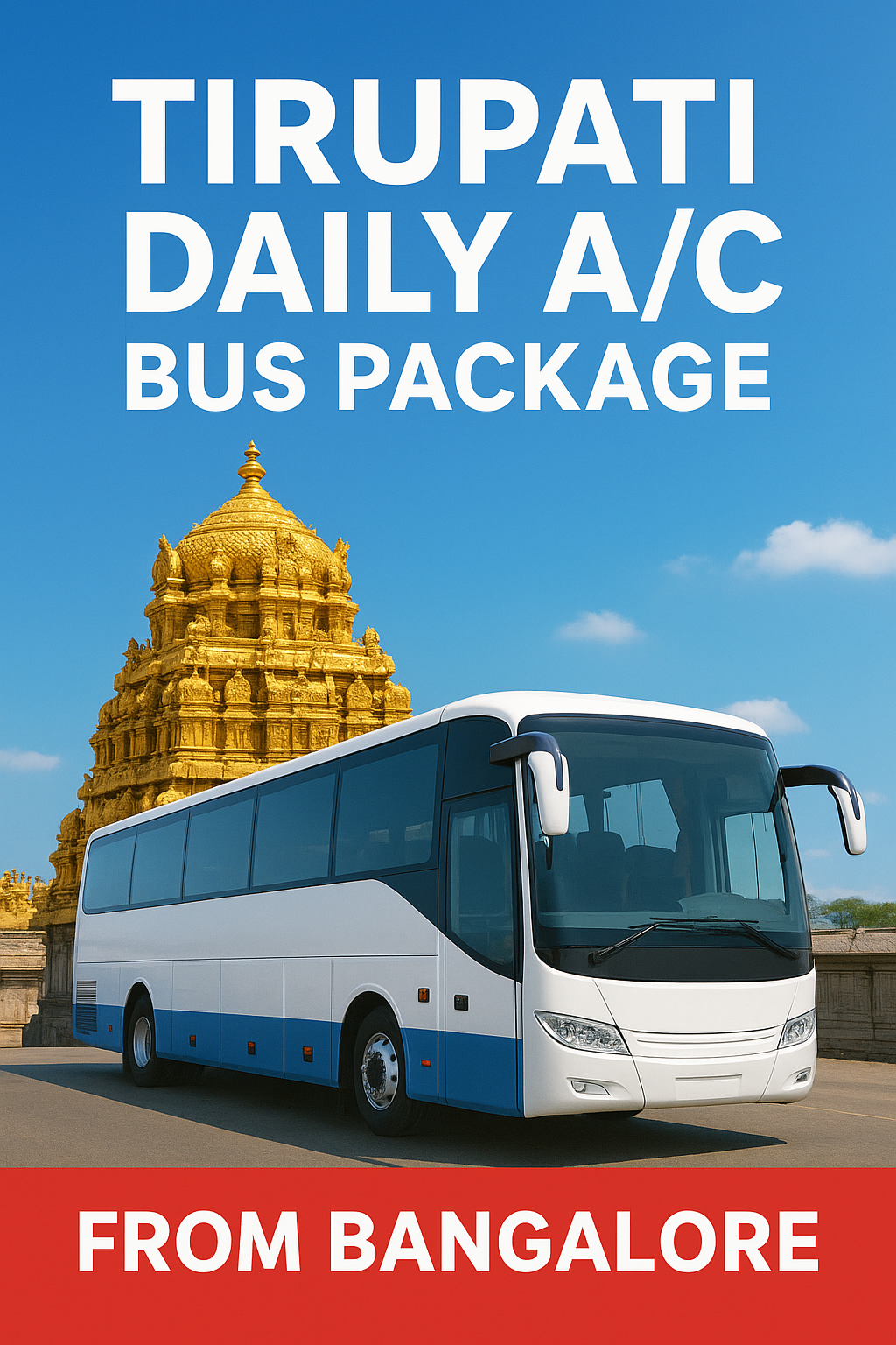 Are you planning a one-day trip from Bangalore to Tirupati? Sri Balaji Travels offers a Tirupati Daily A/C Bus Package designed for comfort, devotion, and convenience. With seamless travel, divine darshan, and quality meals included, this tour is ideal for pilgrims seeking a quick and peaceful visit to Lord Venkateswara Temple at Tirumala.