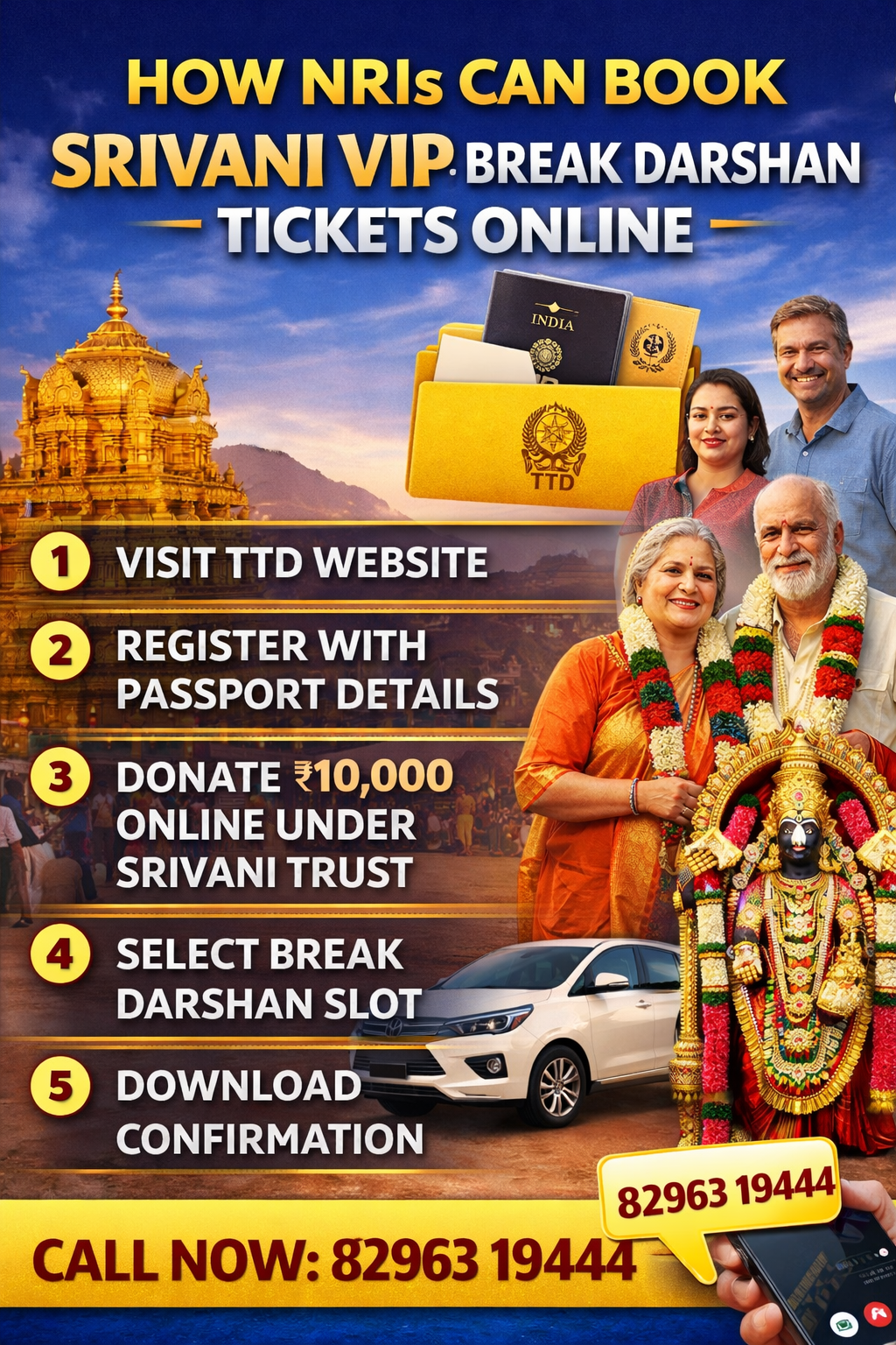Among these, Srivani VIP Break Darshan is the most accessible option for NRIs.