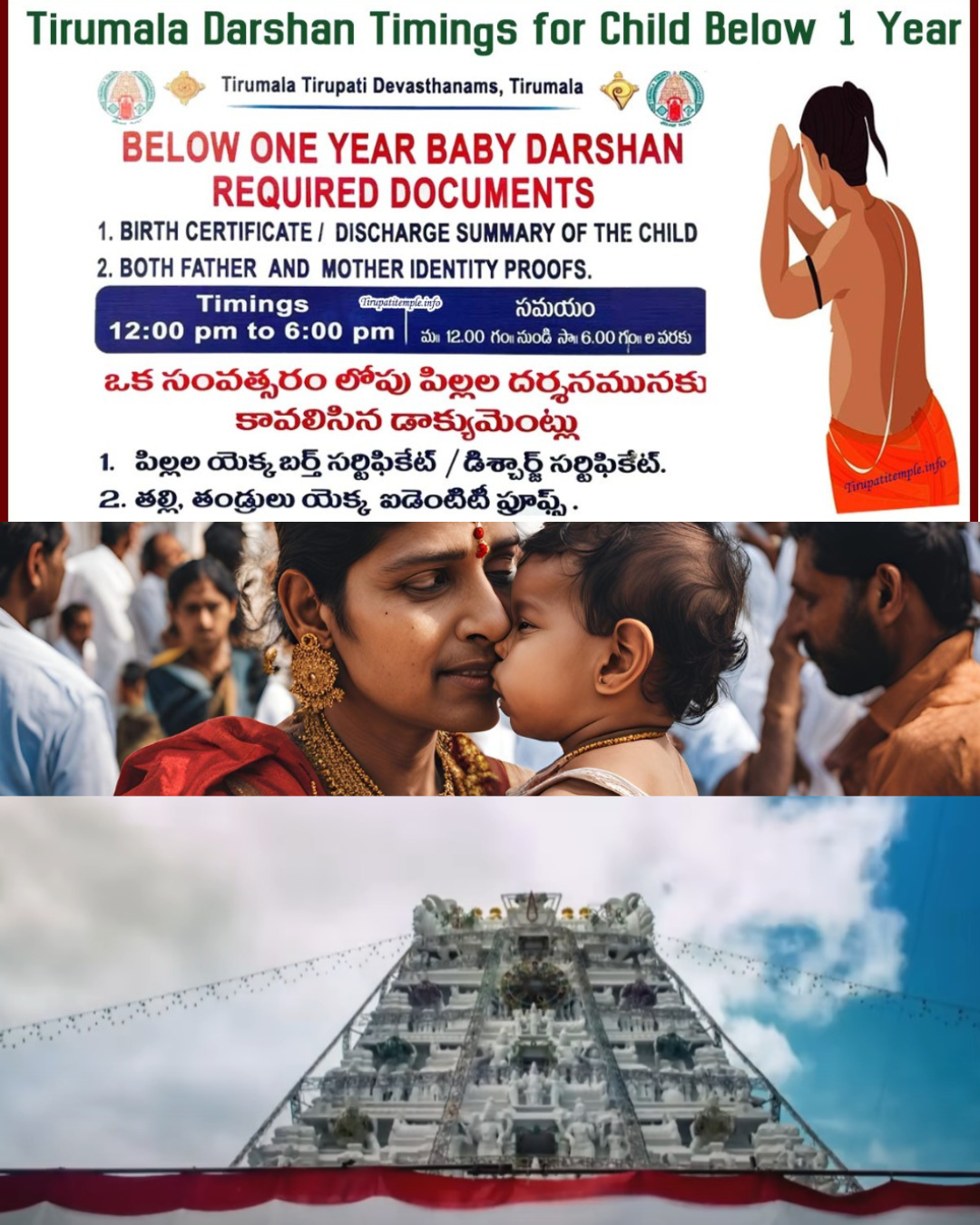 The official TTD infant darshan rules mention specific timings for families traveling with infants: