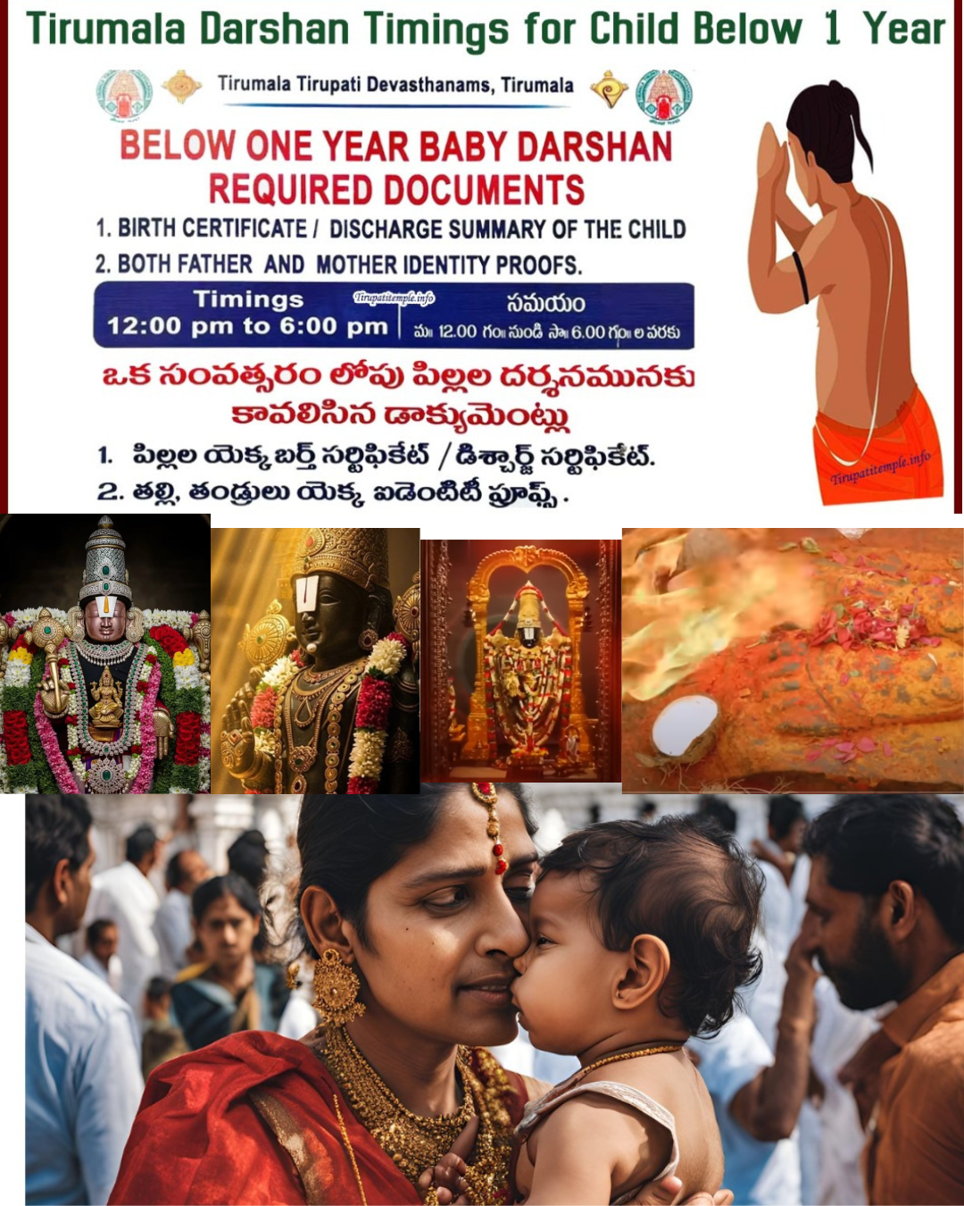 The official TTD infant darshan rules mention specific timings for families traveling with infants:
