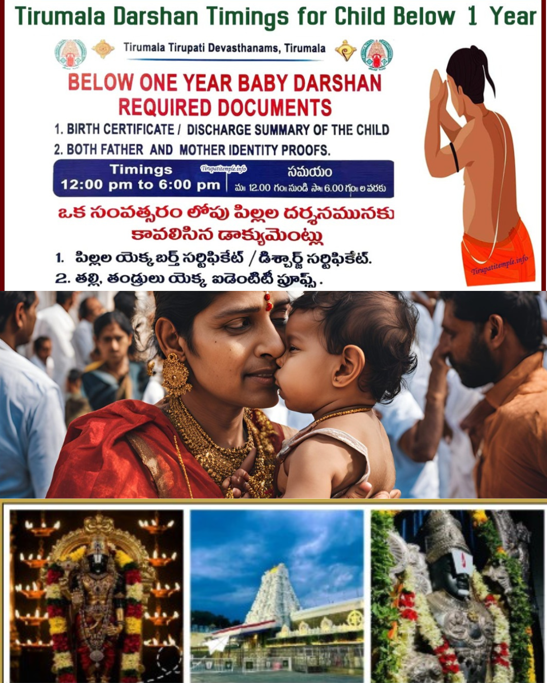 The official TTD infant darshan rules mention specific timings for families traveling with infants: