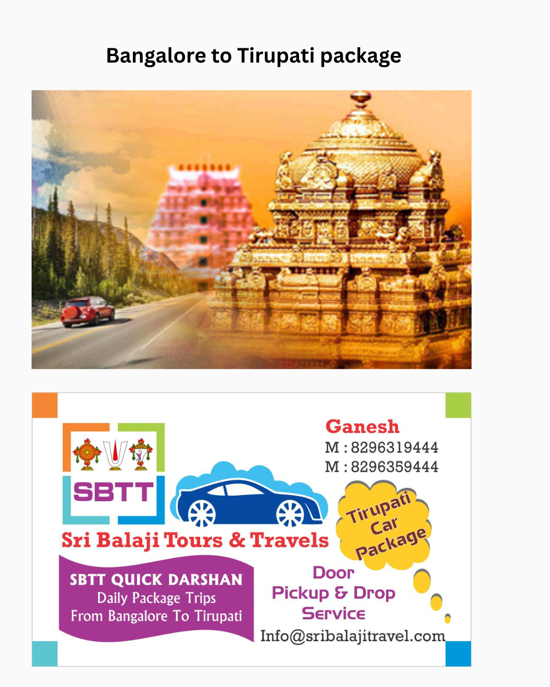 Sri Balaji Travels is a trusted name in Bangalore to Tirupati tour services, with years of experience offering punctual pickups, professional drivers, and seamless coordination for Tirupati darshan. We offer multiple vehicle options, personalized service, and a hassle-free journey from JP Nagar to Tirupati.