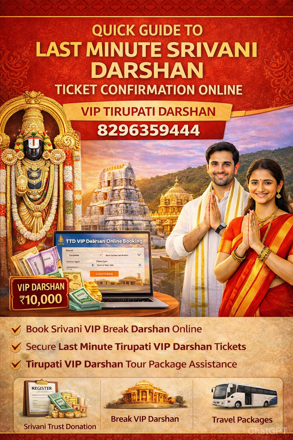 Getting Last Minute Srivani Darshan Ticket Confirmation Online is possible with the right preparation and understanding of the Tirupati Temple VIP Darshan Tickets Process. Whether you book independently or choose a Tirupati VIP darshan travel package, planning ahead improves your chances of a successful and blessed darshan.