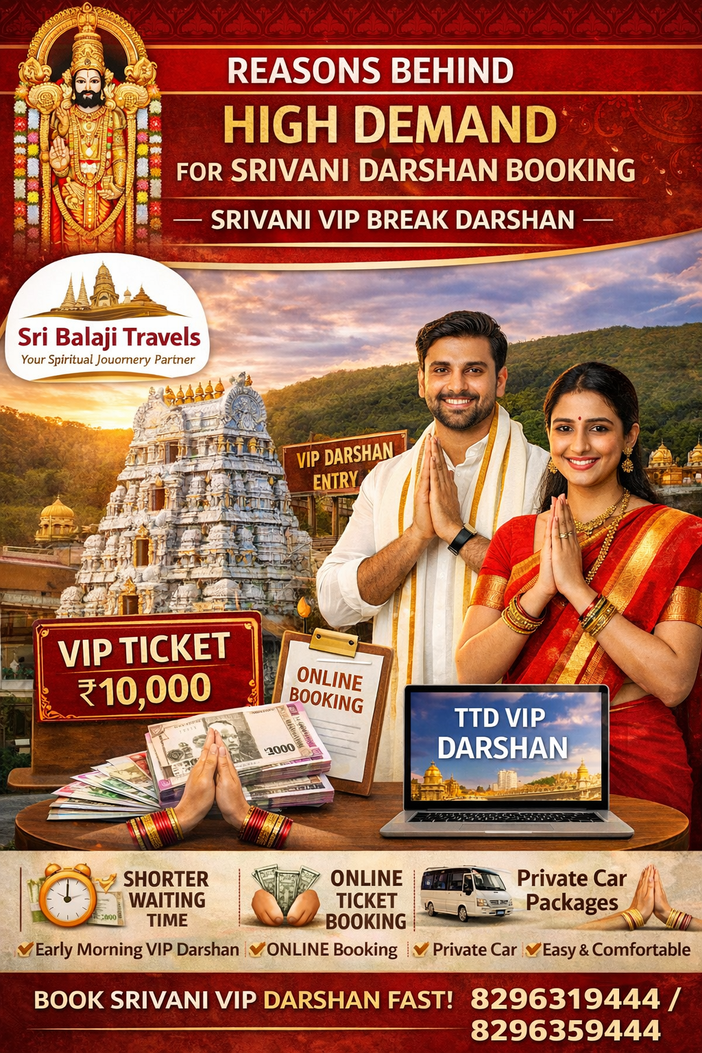 The high demand for Srivani VIP break darshan is driven by convenience, structured darshan access, and the increasing popularity of VIP Tirupati darshan travel packages. With clear booking processes, professional tour operator services, and comfortable travel planning options, more pilgrims are choosing VIP darshan for a smoother and spiritually fulfilling journey.