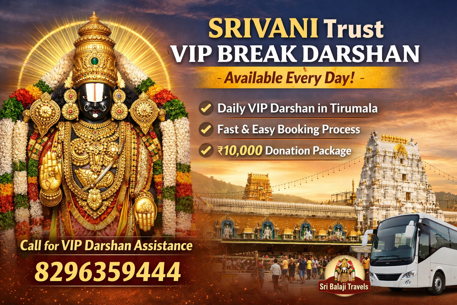 Choosing a travel agent for SRIVANI VIP Darshan simplifies booking and avoids common errors and waiting time.