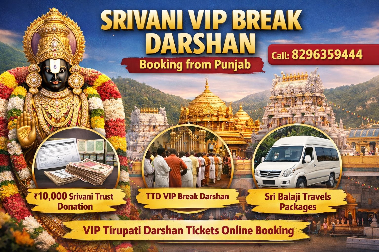 Traveling from Punjab to Tirupati requires careful planning. With Srivani VIP Darshan Tour Packages by Sri Balaji Travels, you can enjoy: