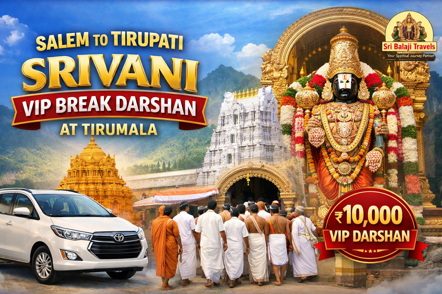 Sri Balaji Travels offers trusted and customized Srivani VIP Darshan Tour Packages from Salem with: