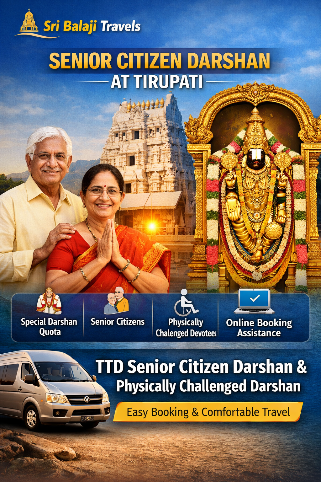 Planning Senior Citizen Darshan at Tirupati can be challenging due to limited quota and travel concerns. Let Sri Balaji Travels handle your journey while you focus on devotion and peace.