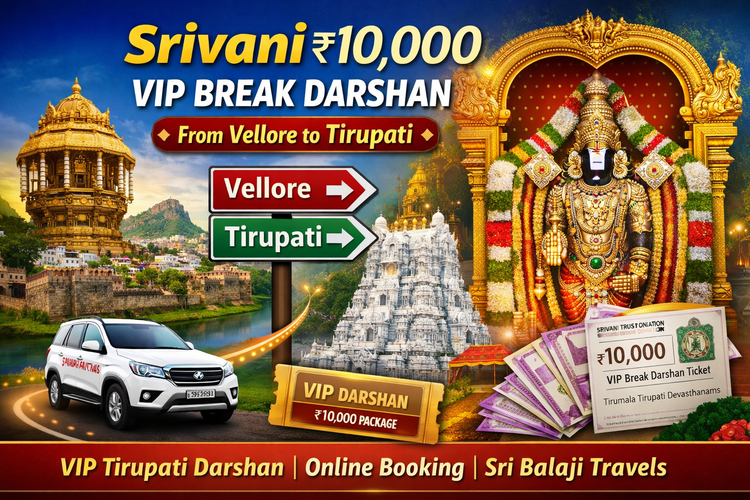 The SRIVANI ₹10,000 VIP Break Darshan in Tirumala is the best way to experience VIP Tirupati Darshan without long queues. With the latest SRIVANI update, online booking is now easier and more reliable. If you are traveling from Vellore, choosing Sri Balaji Travels ensures a stress-free and spiritually fulfilling journey.