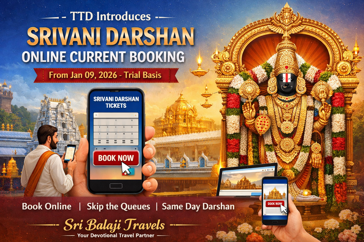 Keeping in view the convenience of devotees, the Tirumala Tirupati Devasthanams (TTD) has taken a significant and devotee-friendly step by introducing an online current booking system for SRIVANI Trust darshan tickets. This new facility will be implemented on a trial basis starting from 9th January 2026 onwards, bringing much-needed relief to pilgrims who previously depended on physical counters at Tirumala.