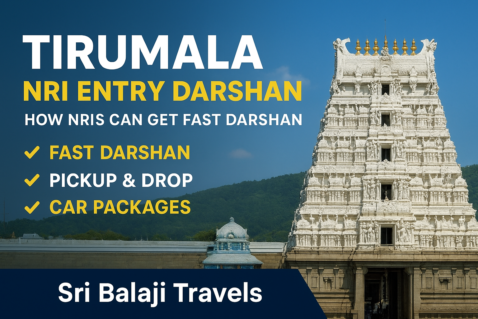 Visiting the sacred Lord Venkateswara Temple in Tirumala is a cherished dream for devotees across the globe—especially NRIs seeking a smooth and faster darshan experience. The Tirumala NRI Entry Darshan provides a special facility that allows Non-Resident Indians to have quicker access with minimal waiting time. Whether you are traveling from Bangalore, Chennai, or Tirupati, Sri Balaji Travels ensures a seamless journey with pickup & drop, dedicated NRI darshan assistance, and customized car packages for a comfortable and stress-free pilgrimage.