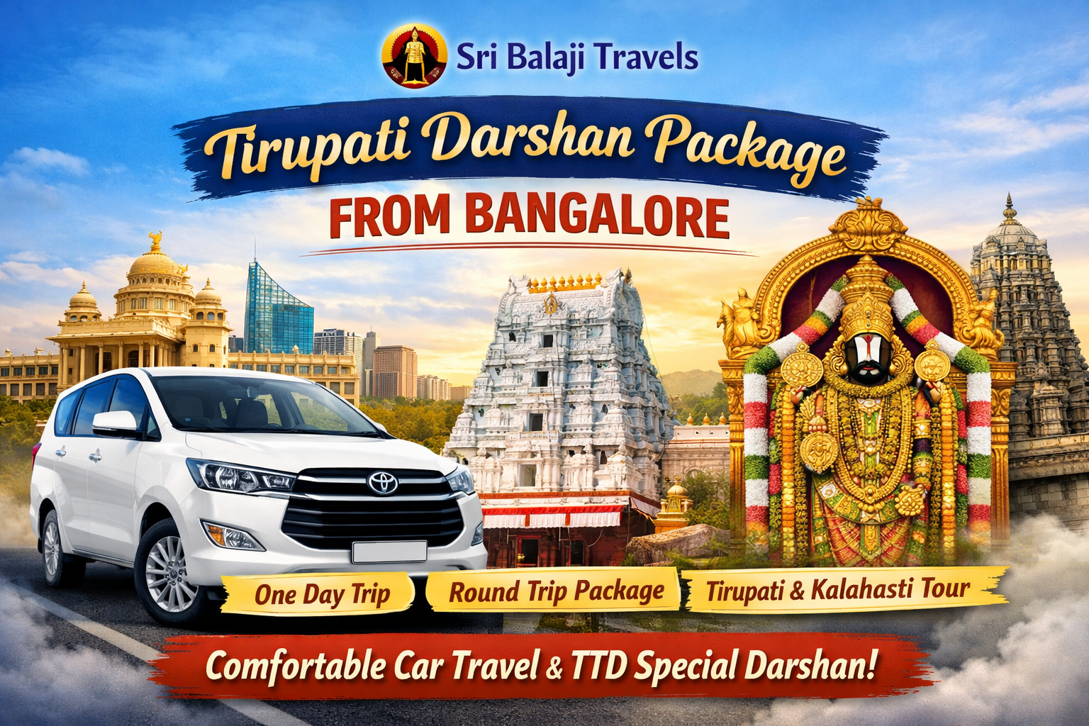 Planning a peaceful trip to Tirupati from Bangalore with comfortable travel and assured darshan? With Sri Balaji Travels, you can book a reliable Tirupati Darshan Package from Bangalore that includes car travel, TTD darshan assistance, and flexible one-day or round trip options—perfect for families, senior citizens, and working professionals.