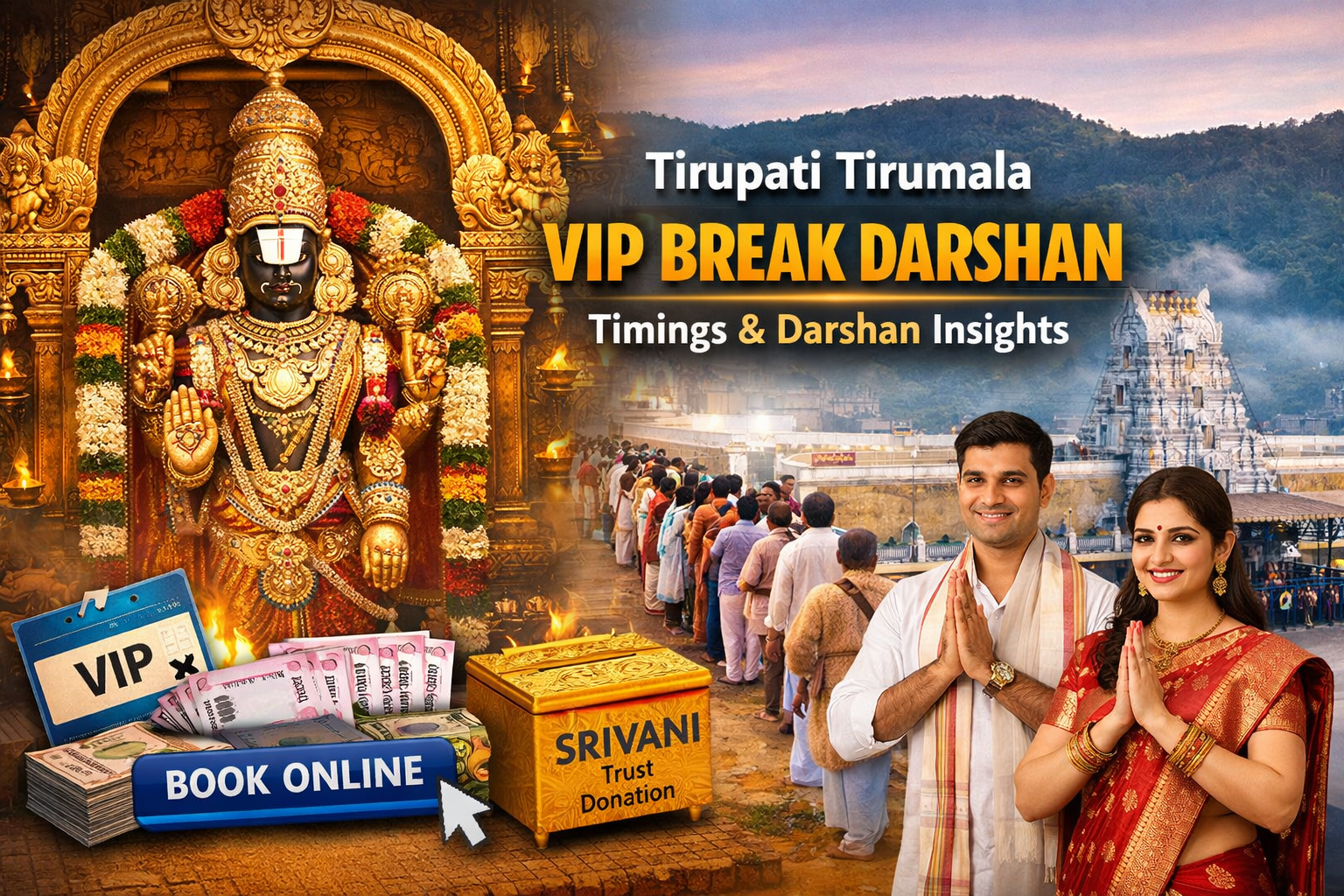 The VIP Break Darshan is a curated darshan package that allows devotees to have a quicker and more organized darshan experience at the Tirumala temple. With limited slots and personalized arrangements, it has become one of the most sought-after darshan options.