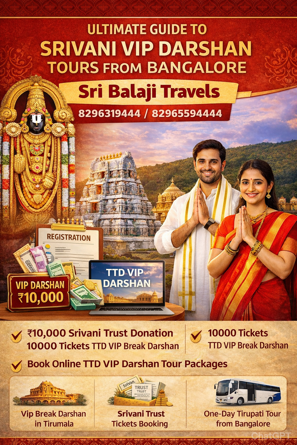 The Ultimate Guide to Srivani VIP Darshan Tours from Bangalore helps devotees understand everything from srivani darshan booking and TTD VIP darshan 10000 tickets booking online to travel planning and darshan benefits.