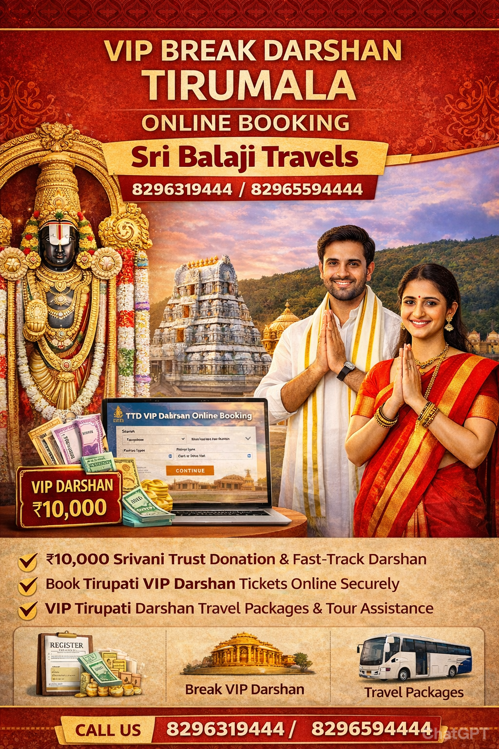 Booking VIP break darshan in Tirumala online is the best way to experience a peaceful and spiritually fulfilling darshan of Lord Venkateswara. Whether you choose Srivani trust VIP darshan, Tirupati VIP darshan ticket booking, or a full VIP Tirupati darshan travel package, planning ahead ensures a stress-free pilgrimage.