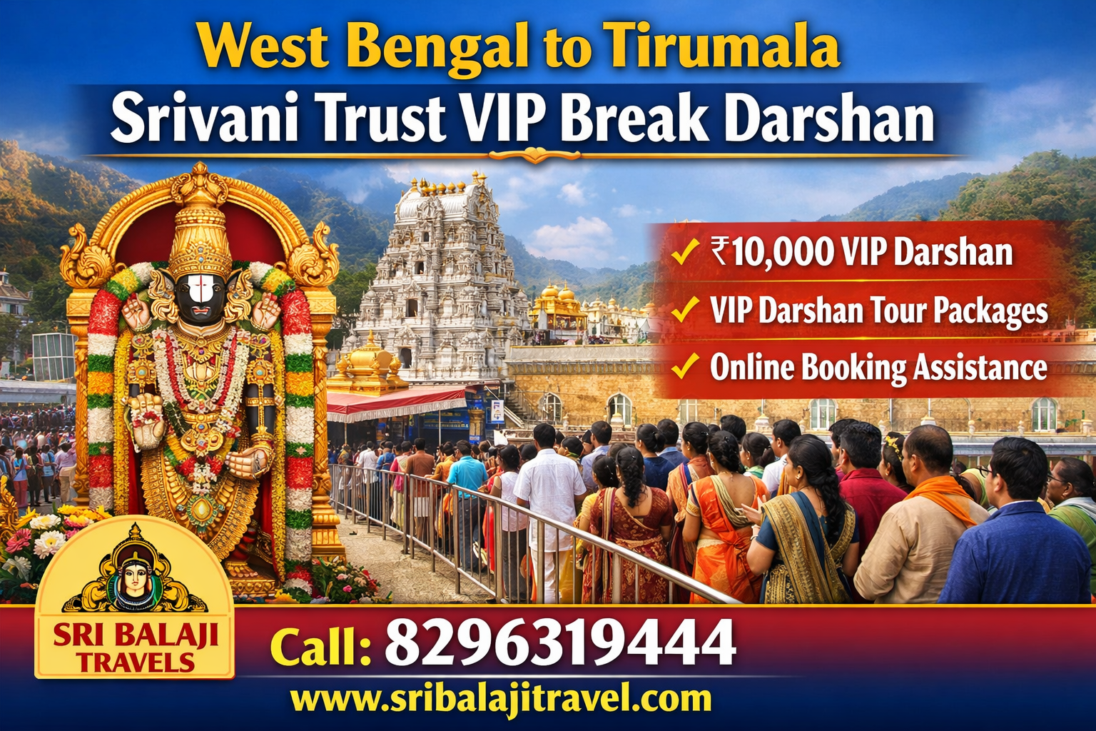 Visiting Tirumala Tirupati Devasthanam to seek the blessings of Lord Venkateswara is a dream for millions of devotees across India. Pilgrims from West Bengal frequently travel to Tirupati for a divine darshan of Lord Balaji. One of the most convenient ways to experience a smooth and quick darshan is through the Srivani Trust VIP Break Darshan in Tirumala.